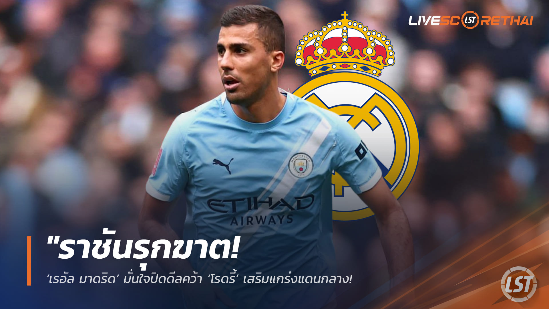 เป้าหมายเบอร์หนึ่ง: เรอัล มาดริด ยอดทีมจากสเปน มั่นใจมากขึ้นเรื่อยๆ ว่าจะสามารถคว้าตัว โรดรี้ กองกลางตัวเก่งของ แมนเชสเตอร์ ซิตี้ มาร่วมทีมได้ในช่วงซัมเมอร์นี้ เพื่อยกระดับแผงมิดฟิลด์ให้แข็งแกร่งยิ่งขึ้น