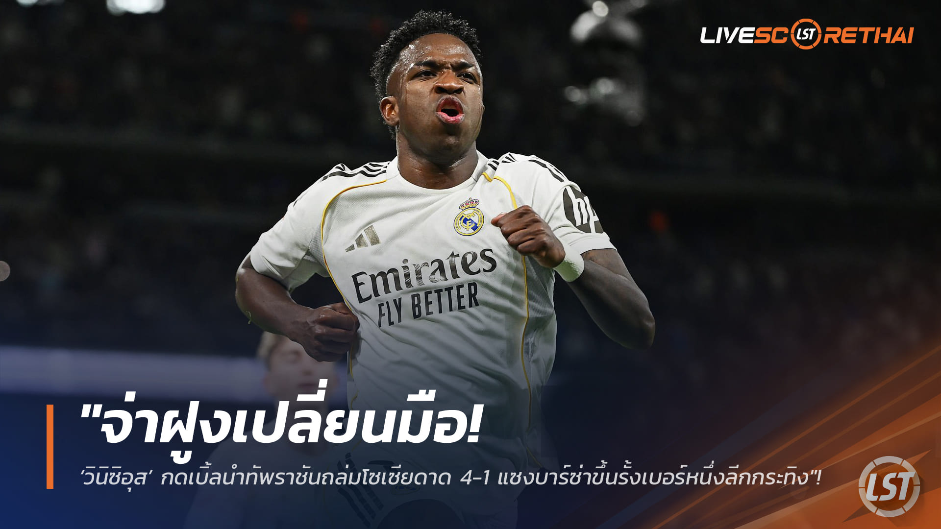 ข่าวฟุตบอล วันอาทิตย์ ที่ 15 กุมพาพันธ์ 2568 : "จ่าฝูงเปลี่ยนมือ! ‘วินิซิอุส’ กดเบิ้ลนำทัพราชันถล่มโซเซียดาด 4-1 แซงบาร์ซ่าขึ้นรั้งเบอร์หนึ่งลีกกระทิง"!