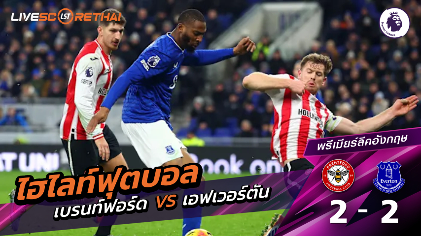 ดูฟรี ไฮไลท์ฟุตบอล พรีเมียร์ลีกอังกฤษ เบรนท์ฟอร์ด VS เอฟเวอร์ตัน ที่ www.livescorethai.com