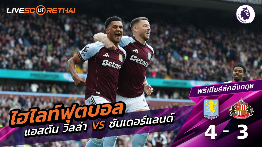 ดูฟรี ไฮไลท์ฟุตบอล พรีเมียร์ลีกอังกฤษ แอสตันวิลลา VS ซันเดอร์แลนด์ ที่ www.livescorethai.com